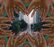 The "TRIPPY" collection is a mixture of photos from all different places. It features 35mm film backgrounds I have taken from Hong Kong, Vigo and Madrid; layered with digital images.